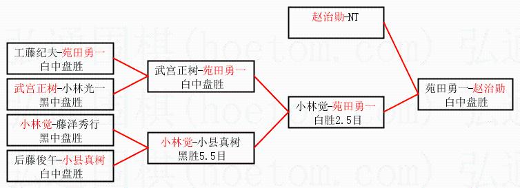 | 1.赵治勋获得冠军,苑田勇一获得亚军。决赛比分:赵治勋3:2苑田勇一。棋局: | ||
