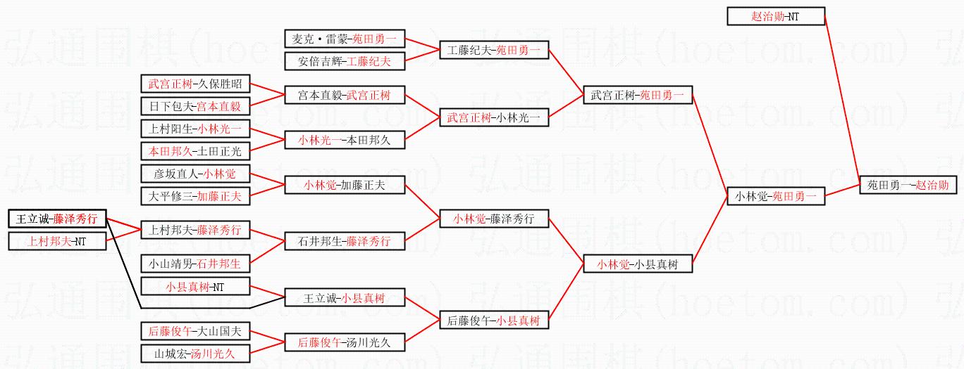 | 1.赵治勋获得冠军,苑田勇一获得亚军。决赛比分:赵治勋3:2苑田勇一。棋局: | ||