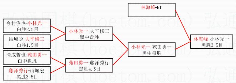 3.下半区半决赛小林光一获胜,比分:小林光一1:0苑田勇一。棋局: