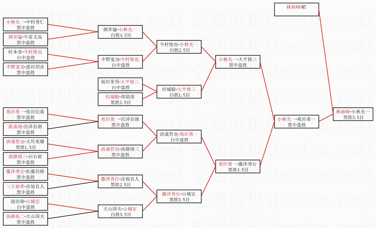 1.林海峰获得冠军,小林光一获得亚军。决赛比分:林海峰3:1小林光一。棋局: