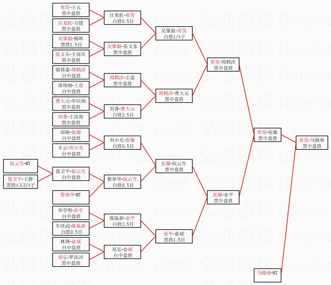 1.常昊获得冠军,马晓春获得亚军。决赛比分:常昊3:1马晓春。棋局: