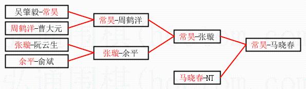 2.上半区半决赛常昊获胜, 比分:常昊 1:0 张璇。棋局: