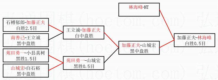 | 1.林海峰获得冠军,加藤正夫获得亚军。决赛比分:林海峰3:1加藤正夫。棋局: | ||