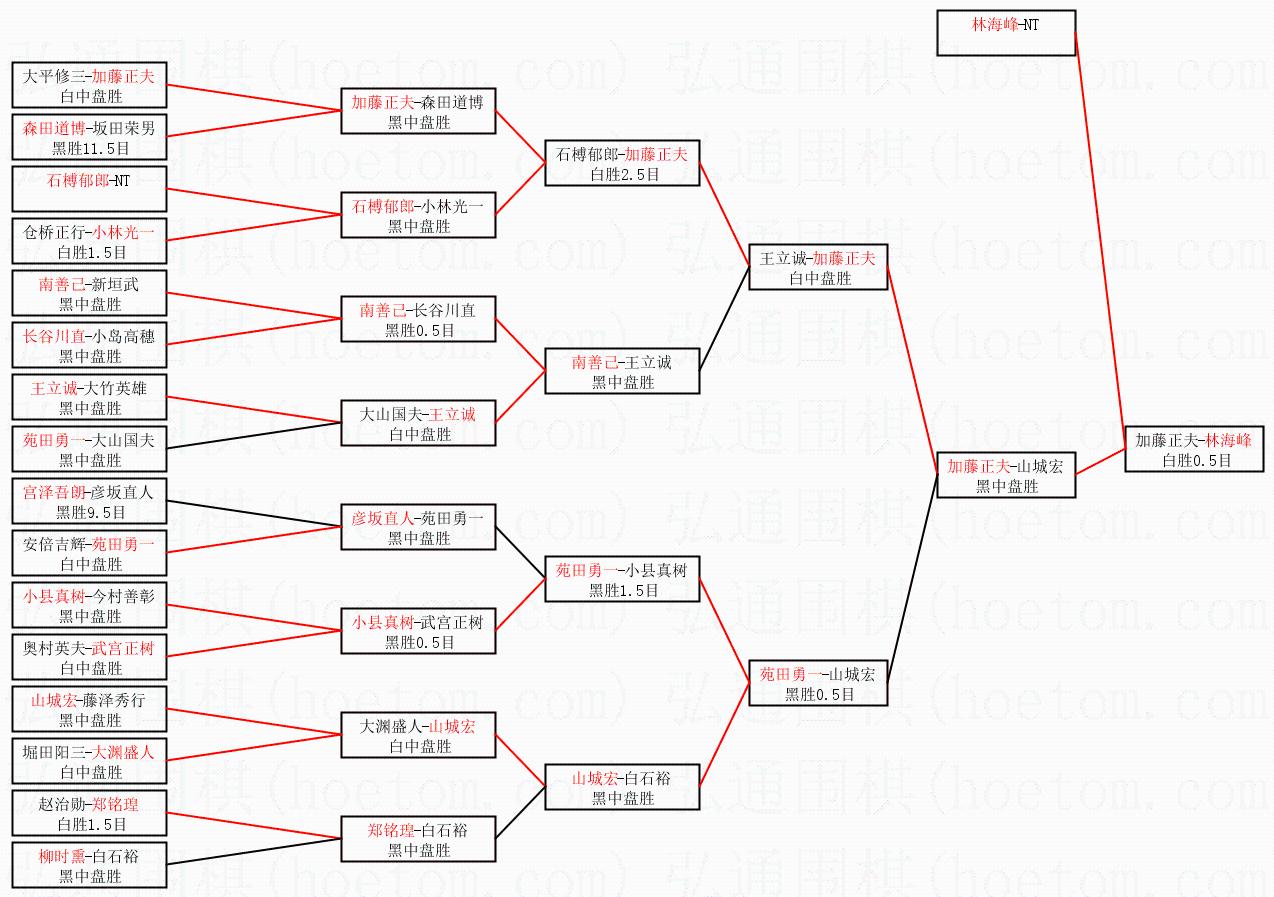| 1.林海峰获得冠军,加藤正夫获得亚军。决赛比分:林海峰3:1加藤正夫。棋局: | ||