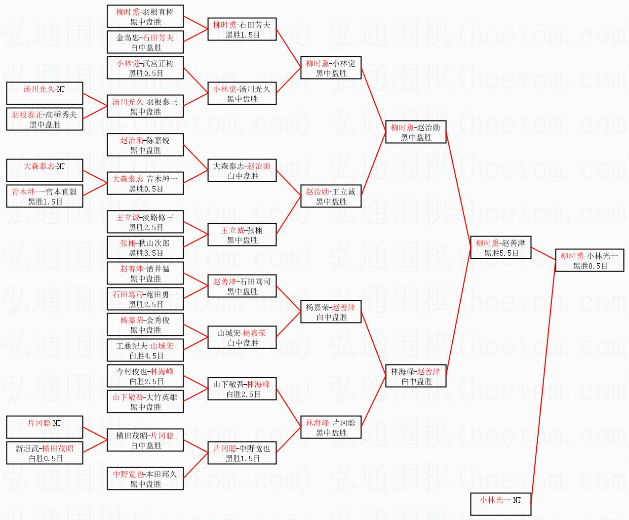 1.柳时熏获得冠军,小林光一获得亚军。决赛比分:柳时熏3:0小林光一。棋局:
