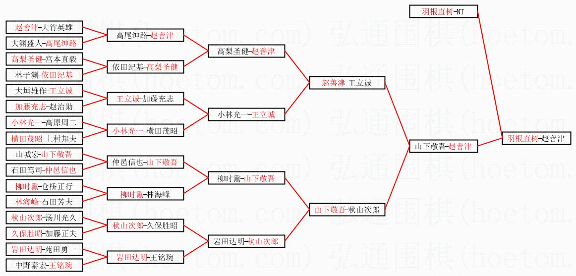 1.羽根直树获得冠军,赵善津获得亚军。决赛比分:羽根直树3:0赵善津。棋局: