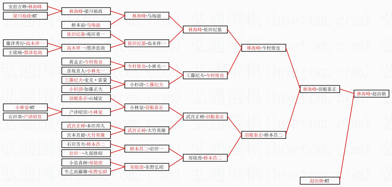 | 2.上半区半决赛林海峰获胜, 比分:林海峰 1:0 羽根泰正。棋局: | ||