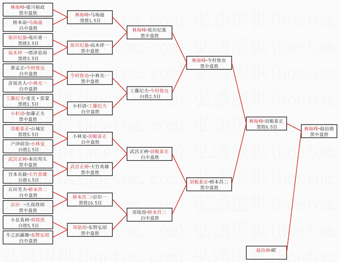 | 2.上半区半决赛林海峰获胜, 比分:林海峰 1:0 羽根泰正。棋局: | ||