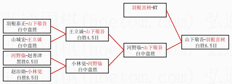 | 1.羽根直树获得冠军,山下敬吾获得亚军。决赛比分:羽根直树3:2山下敬吾。棋局: | ||