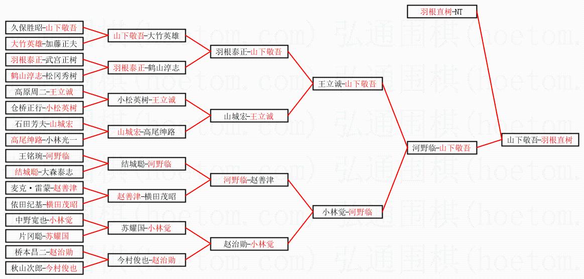 1.羽根直树获得冠军,山下敬吾获得亚军。决赛比分:羽根直树3:2山下敬吾。棋局: