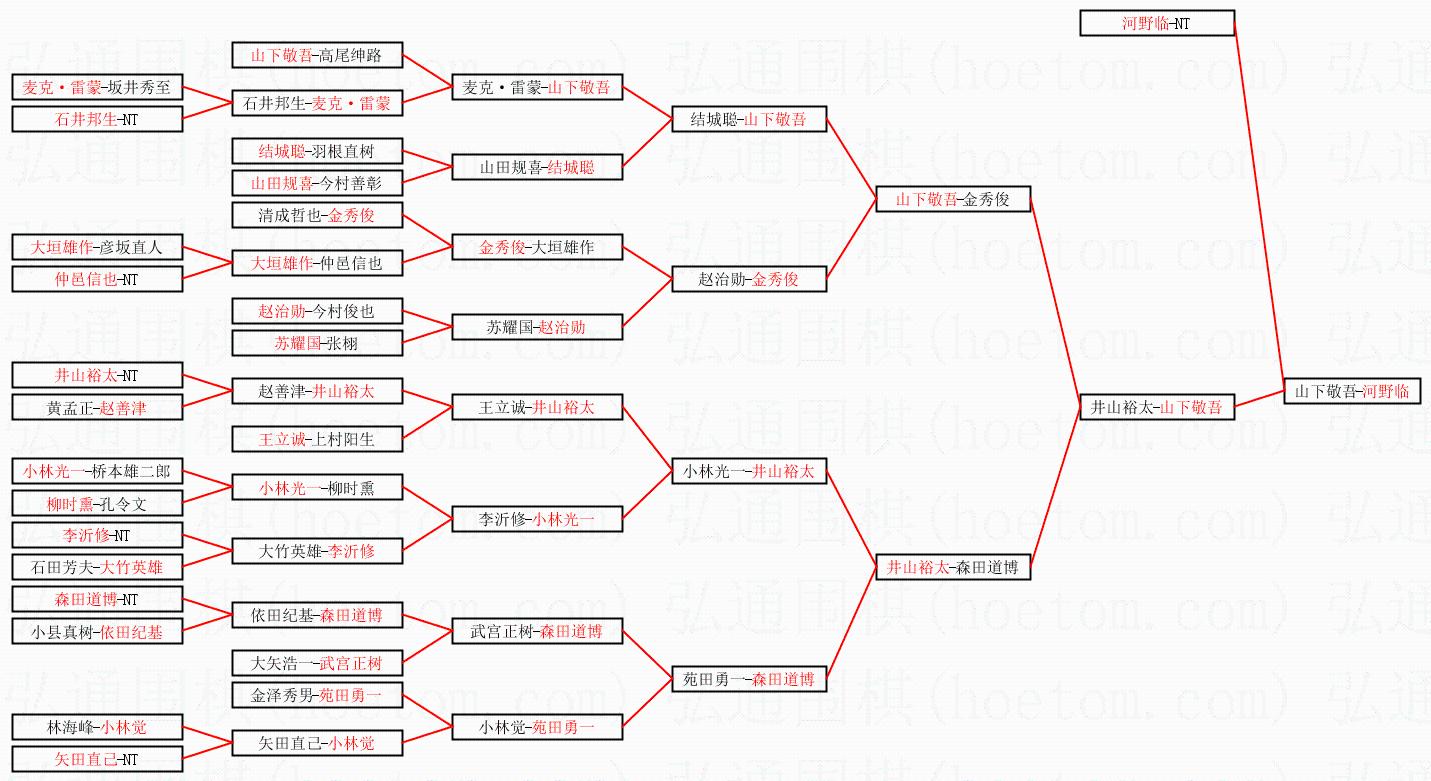 | 3.下半区半决赛山下敬吾获胜,比分:山下敬吾1:0井山裕太。棋局: | ||