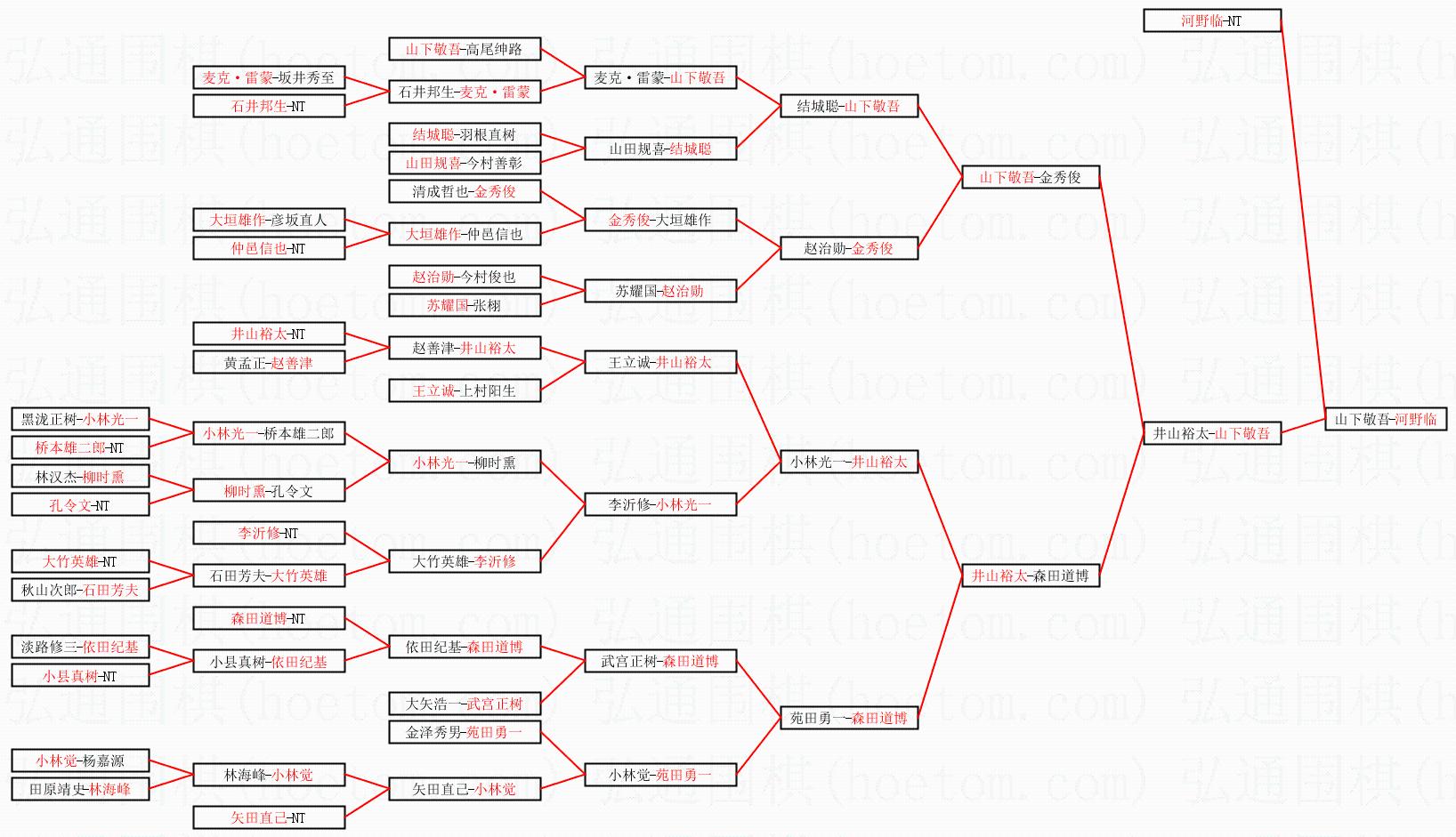 | 1.河野临获得冠军,山下敬吾获得亚军。决赛比分:河野临3:1山下敬吾。棋局: | ||