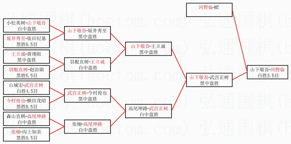 3.下半区半决赛山下敬吾获胜,比分:山下敬吾1:0武宫正树。棋局: