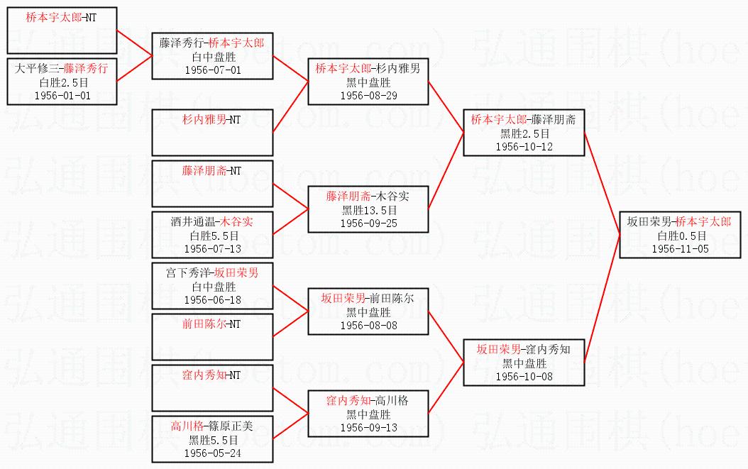 | 1.桥本宇太郎获得冠军,坂田荣男获得亚军。决赛比分:桥本宇太郎2:0坂田荣男。棋局: | ||