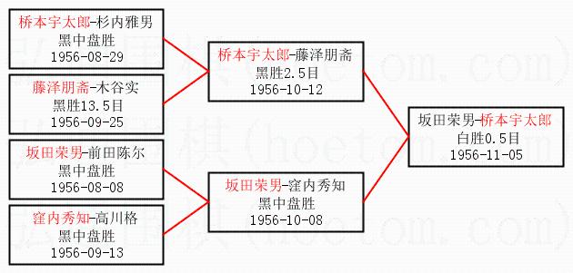 | 1.桥本宇太郎获得冠军,坂田荣男获得亚军。决赛比分:桥本宇太郎2:0坂田荣男。棋局: | ||