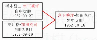 | 2.上半区半决赛宫下秀洋获胜, 比分:宫下秀洋 1:0 桥本昌二。棋局: | ||