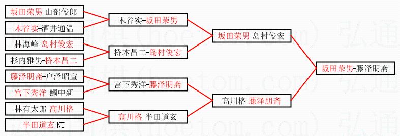 1.坂田荣男获得冠军,藤泽朋斋获得亚军。决赛比分:坂田荣男2:0藤泽朋斋。棋局: