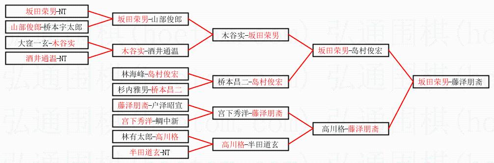 1.坂田荣男获得冠军,藤泽朋斋获得亚军。决赛比分:坂田荣男2:0藤泽朋斋。棋局: