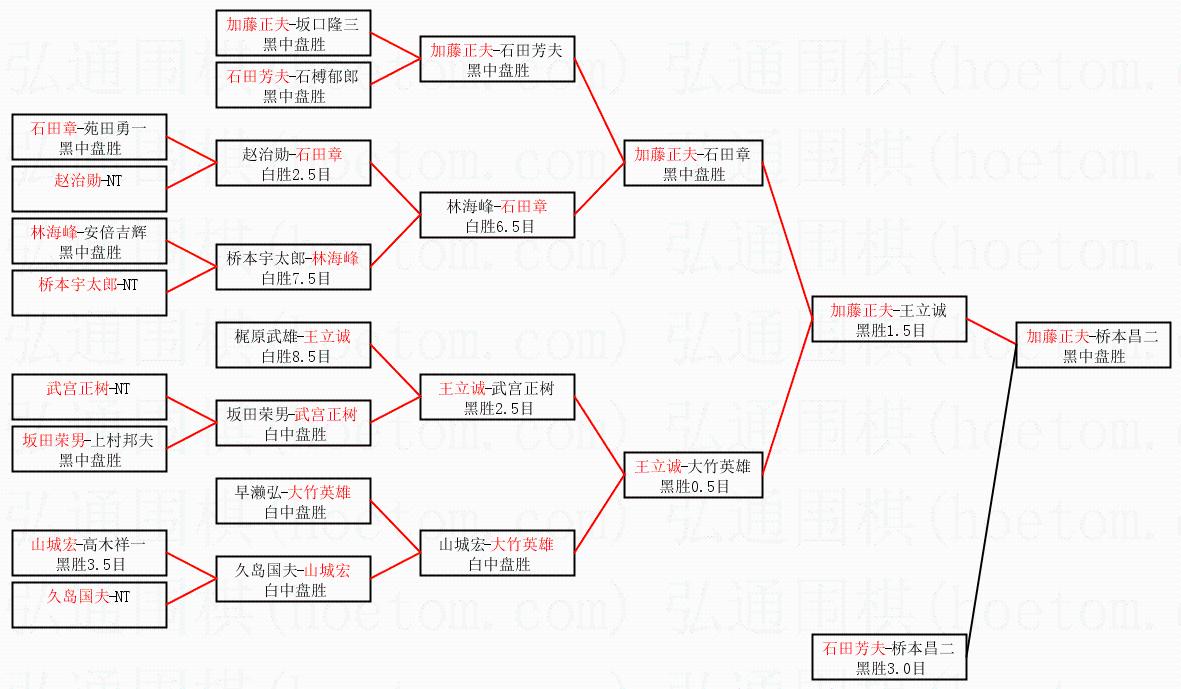 | 1.加藤正夫获得冠军,桥本昌二获得亚军。决赛比分:加藤正夫2:0桥本昌二。棋局: | ||