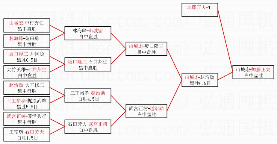 1.加藤正夫获得冠军,山城宏获得亚军。决赛比分:加藤正夫3:0山城宏。棋局: