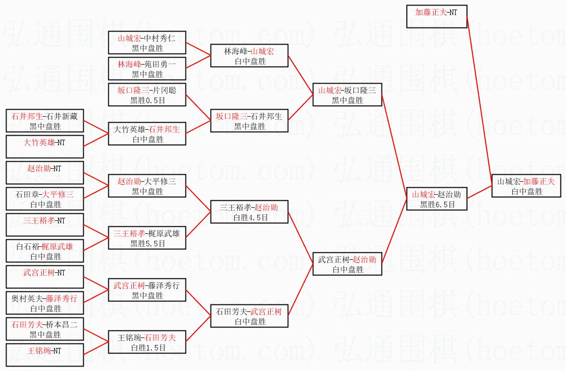 1.加藤正夫获得冠军,山城宏获得亚军。决赛比分:加藤正夫3:0山城宏。棋局: