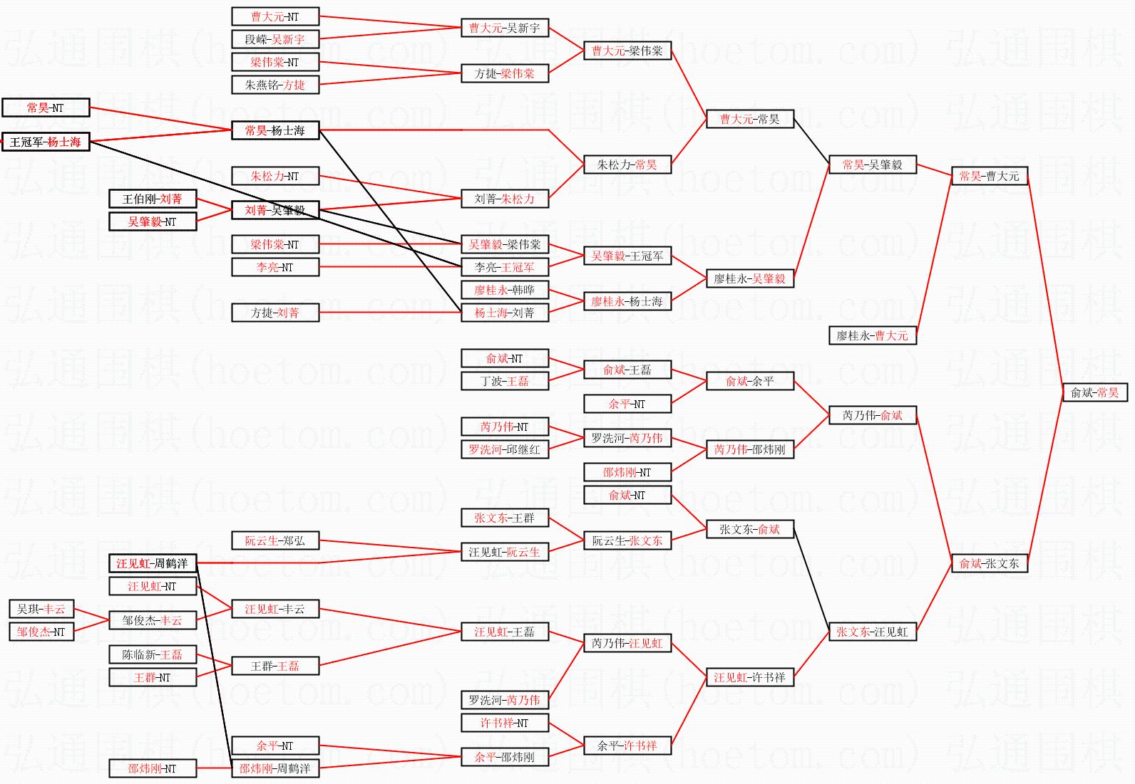 2.上半区半决赛常昊获胜, 比分:常昊 1:0 曹大元。棋局: