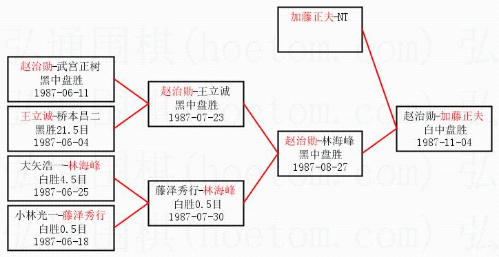 1.加藤正夫获得冠军,赵治勋获得亚军。决赛比分:加藤正夫3:1赵治勋。棋局:
