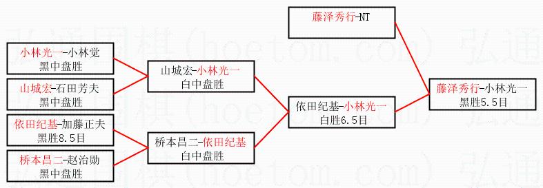 1.藤泽秀行获得冠军,小林光一获得亚军。决赛比分:藤泽秀行3:2小林光一。棋局: