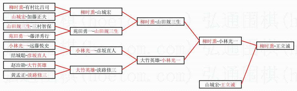 | 2.上半区半决赛柳时熏获胜, 比分:柳时熏 1:0 小林光一。棋局: | ||