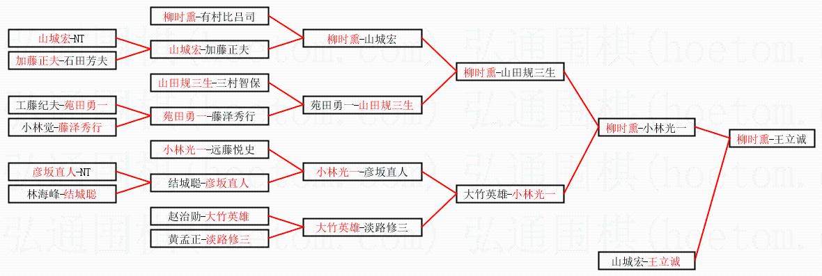 | 2.上半区半决赛柳时熏获胜, 比分:柳时熏 1:0 小林光一。棋局: | ||