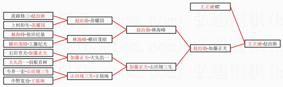 | 1.王立诚获得冠军,赵治勋获得亚军。决赛比分:王立诚3:1赵治勋。棋局: | ||