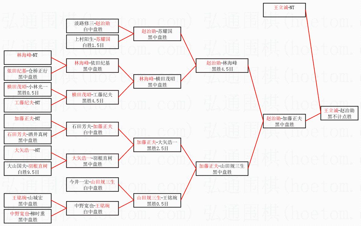 | 1.王立诚获得冠军,赵治勋获得亚军。决赛比分:王立诚3:1赵治勋。棋局: | ||