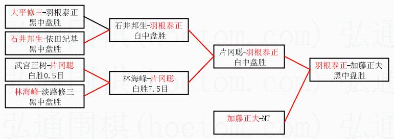 | 1.羽根泰正获得冠军,加藤正夫获得亚军。决赛比分:羽根泰正3:2加藤正夫。棋局: | ||
