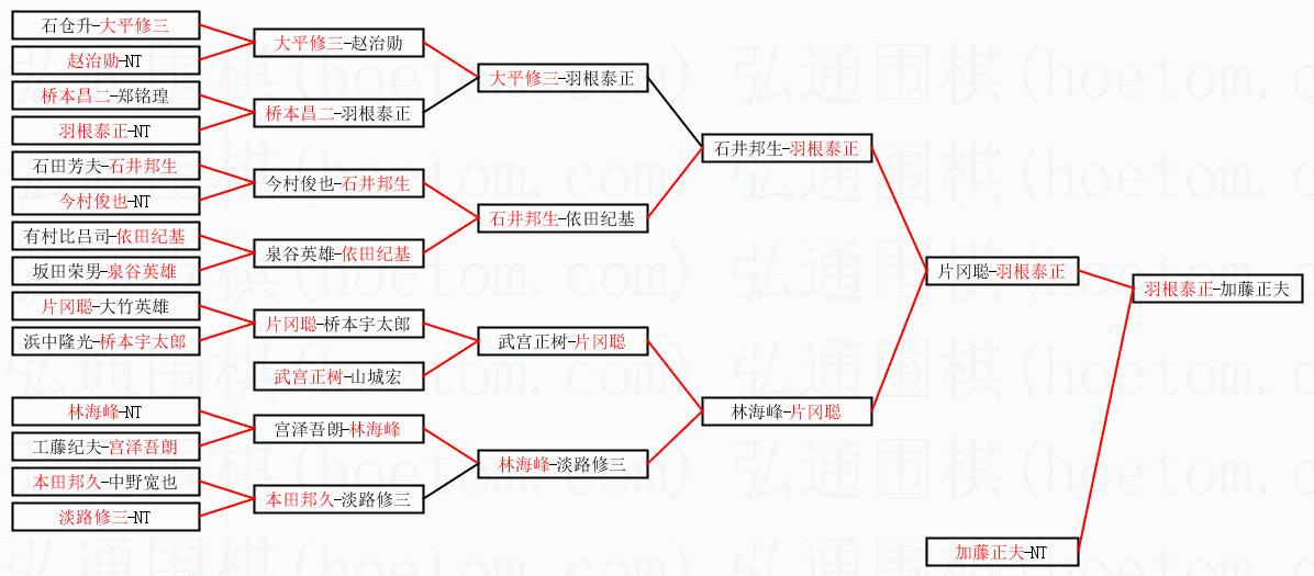 | 1.羽根泰正获得冠军,加藤正夫获得亚军。决赛比分:羽根泰正3:2加藤正夫。棋局: | ||