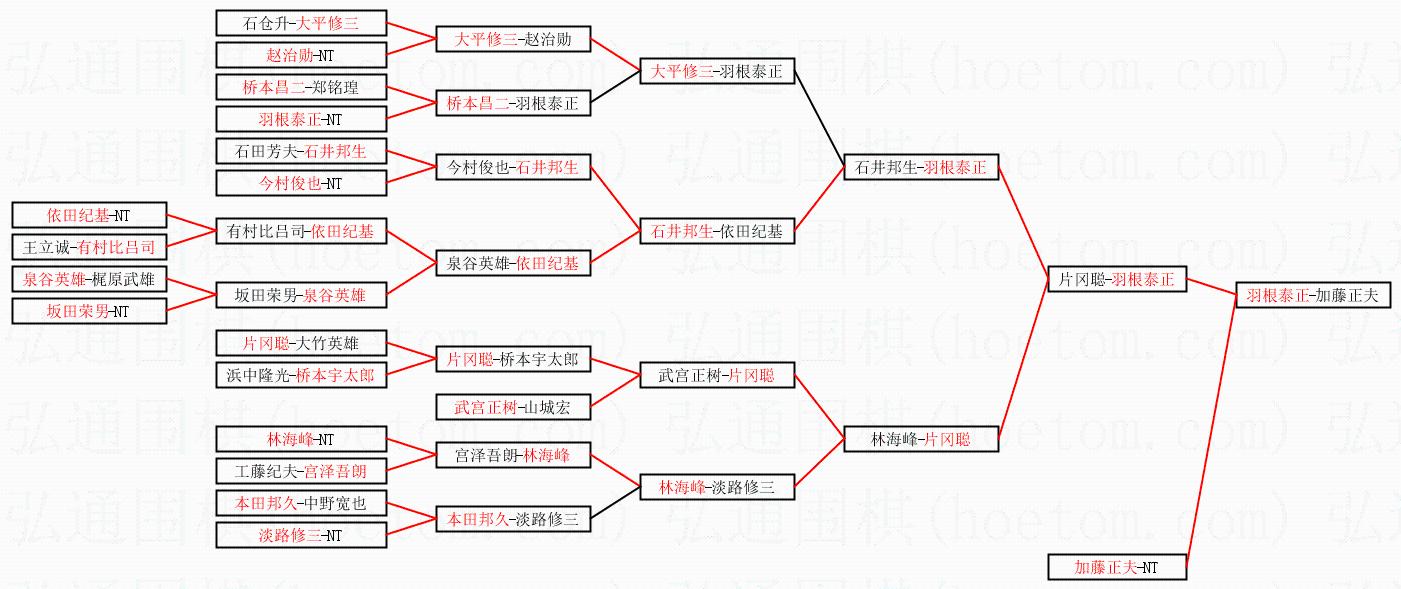 1.羽根泰正获得冠军,加藤正夫获得亚军。决赛比分:羽根泰正3:2加藤正夫。棋局: