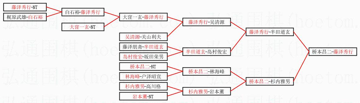 1.藤泽秀行获得冠军,桥本昌二获得亚军。决赛比分:藤泽秀行2:0桥本昌二。棋局: