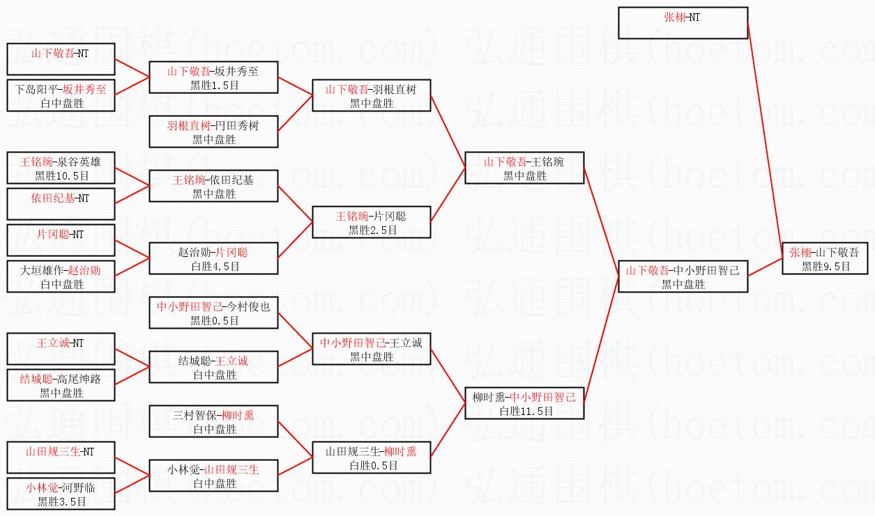 1.张栩获得冠军,山下敬吾获得亚军。决赛比分:张栩3:0山下敬吾。棋局: