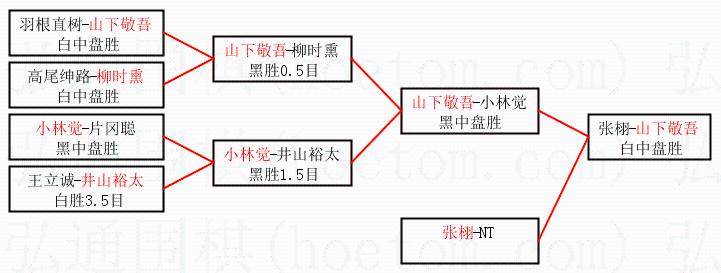 | 1.山下敬吾获得冠军,张栩获得亚军。决赛比分:山下敬吾3:1张栩。棋局: | ||