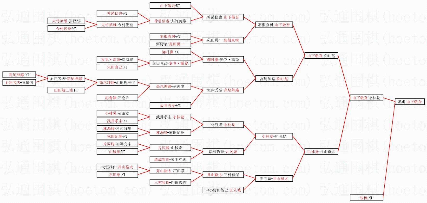 1.山下敬吾获得冠军,张栩获得亚军。决赛比分:山下敬吾3:1张栩。棋局: