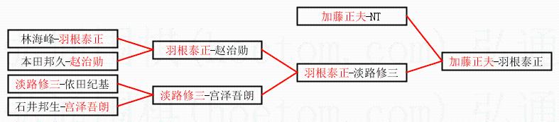 3.下半区半决赛羽根泰正获胜,比分:羽根泰正1:0淡路修三。棋局: