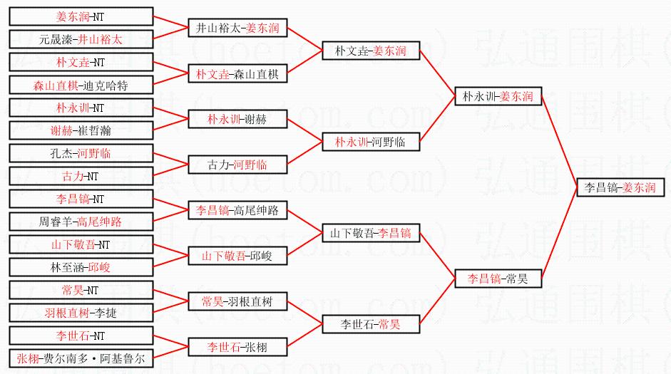 | 1.姜东润获得冠军,李昌镐获得亚军。决赛比分:姜东润1:0李昌镐。棋局: | ||
