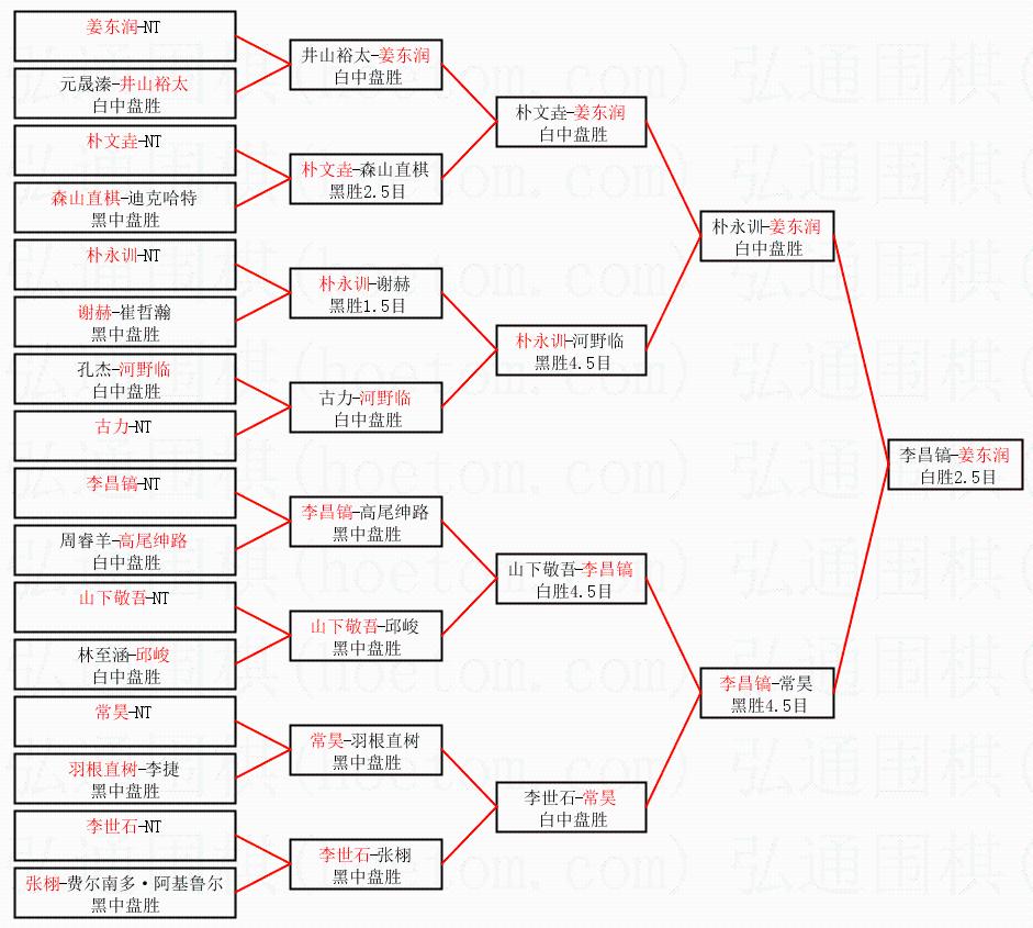 | 1.姜东润获得冠军,李昌镐获得亚军。决赛比分:姜东润1:0李昌镐。棋局: | ||