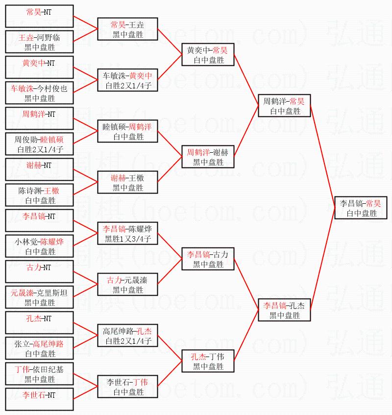 1.常昊获得冠军,李昌镐获得亚军。决赛比分:常昊2:0李昌镐。棋局: