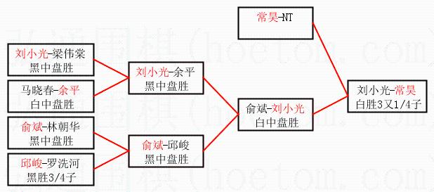 1.常昊获得冠军,刘小光获得亚军。决赛比分:常昊3:1刘小光。棋局: