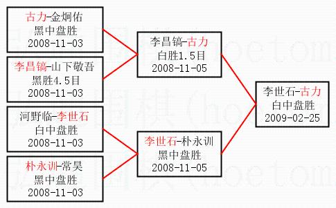 2.上半区半决赛古力获胜, 比分:古力 1:0 李昌镐。棋局: