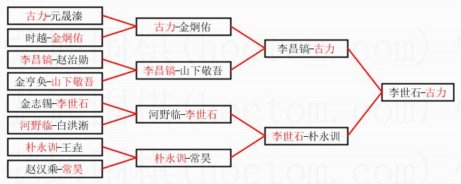 2.上半区半决赛古力获胜, 比分:古力 1:0 李昌镐。棋局: