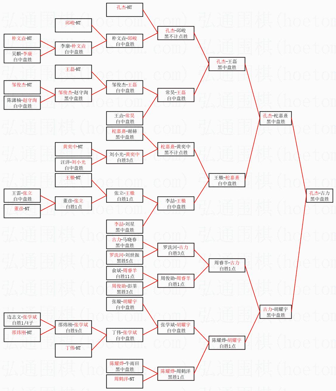 | 1.孔杰获得冠军,古力获得亚军。决赛比分:孔杰2:1古力。棋局: | ||
