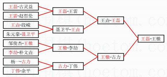 2.上半区半决赛王磊获胜, 比分:王磊 1:0 王垚。棋局: