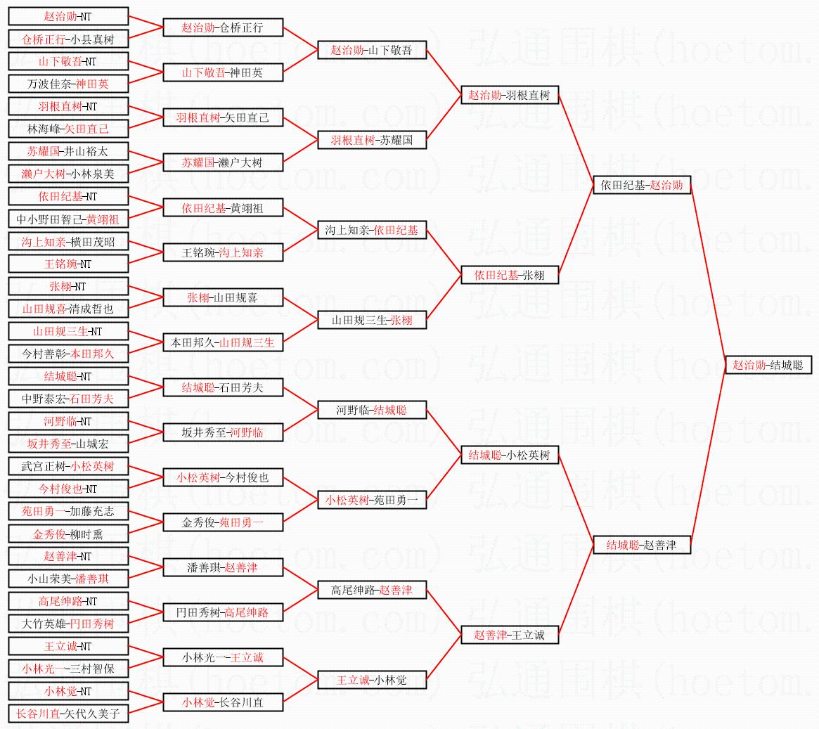 1.赵治勋获得冠军,结城聪获得亚军。决赛比分:赵治勋1:0结城聪。棋局: