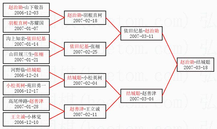 1.赵治勋获得冠军,结城聪获得亚军。决赛比分:赵治勋1:0结城聪。棋局: